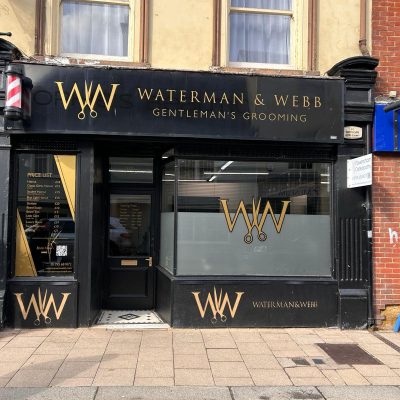 Barber shop, male grooming and lifestyle with selection of hair products for sale.